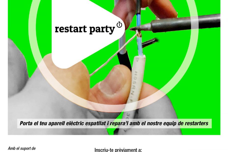 El dissabte 17/1 tindrem la primera restart party de l’any: porta el teu electrodomèstic espatllat i recupera’l amb ajuda del nostre equip de reparació. Inscripcions: bit.ly/autoreparacio.